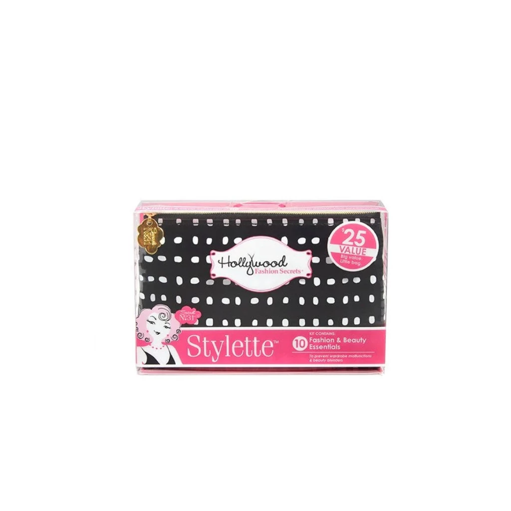 Modni set za hitne popravke crni je vaša tajna potpora upakirana u elegantnu, kompaktnu kutijicu koja stane u svaku torbicu. Ovaj set objedinjuje najpopularnije modne trikove brenda Hollywood Fashion Secrets u jednom praktičnom pakiranju, rješavajući sve neugodne situacije s odjećom “u hodu”.